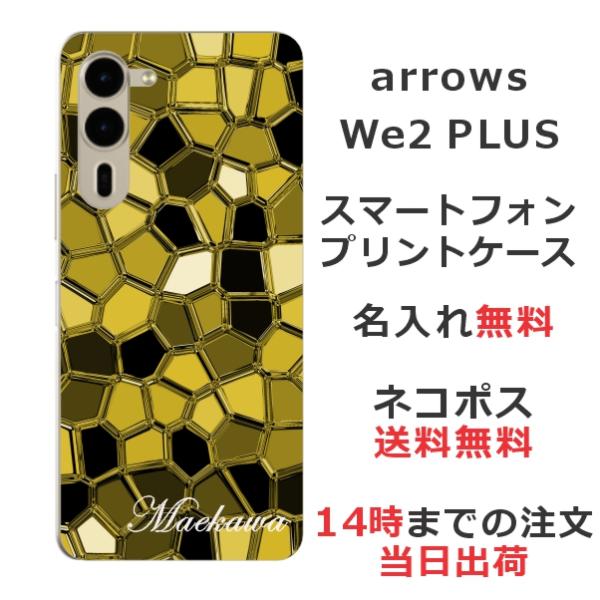 arrows We2 PLUS F-51E アローズWe2プラス らふら 名入れ スマホケース ゴールド モザイク