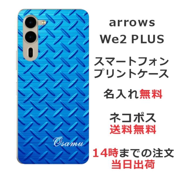 arrows We2 PLUS F-51E アローズWe2プラス らふら 名入れ スマホケース メタル ブルー