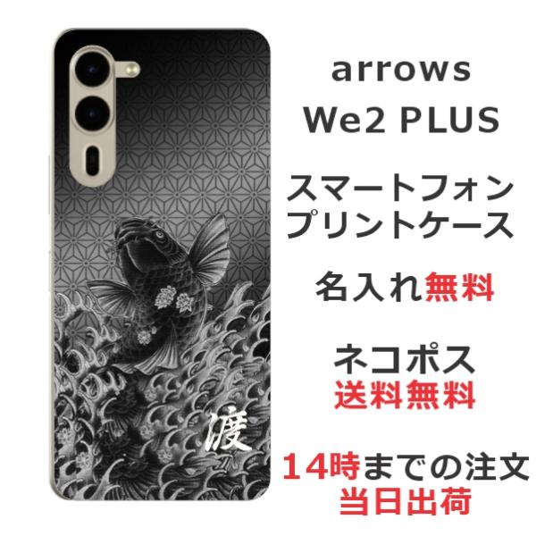arrows We2 PLUS F-51E アローズWe2プラス らふら 名入れ スマホケース 和柄 昇り鯉黒