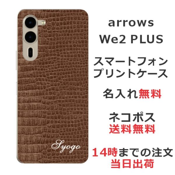 arrows We2 PLUS F-51E アローズWe2プラス らふら 名入れ スマホケース クロコダイル ブラウン