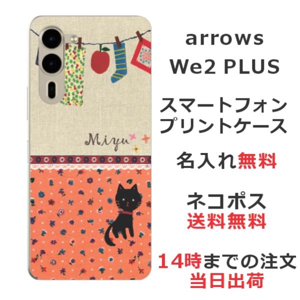 arrows We2 PLUS F-51E アローズWe2プラス らふら 名入れ スマホケース 黒猫 洗濯物