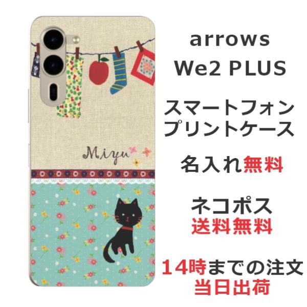 arrows We2 PLUS F-51E アローズWe2プラス らふら 名入れ スマホケース 黒猫 洗濯物