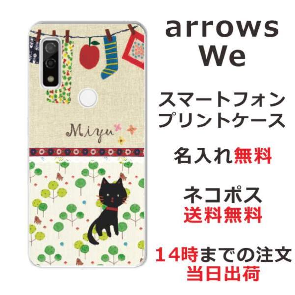 arrows We アローズWe F-51B FCG01 A101FC らふら 名入れ スマホケース 黒猫 洗濯物