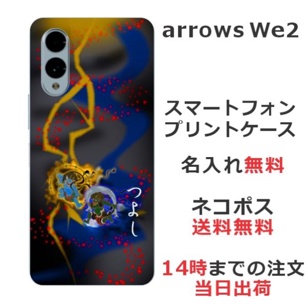 arrows We2 アローズWe2 F-52E FCG02 らふら 名入れ スマホケース 和柄 風神雷神