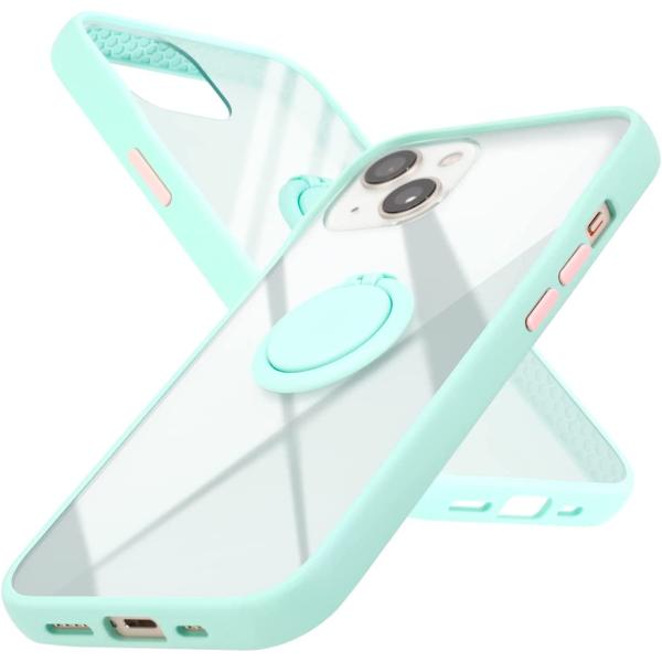 campino iPhone 13 mini ケース アンチショック 耐衝撃 フィンガー リング スリム 薄型 レンズ保護 アイス グリーン 緑 クリア