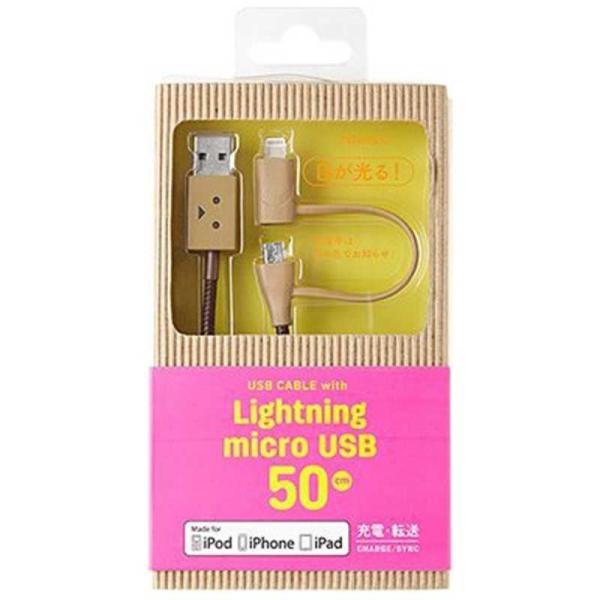 スマートフォン対応「micro USB+Lightning」USBケーブル(50cm)