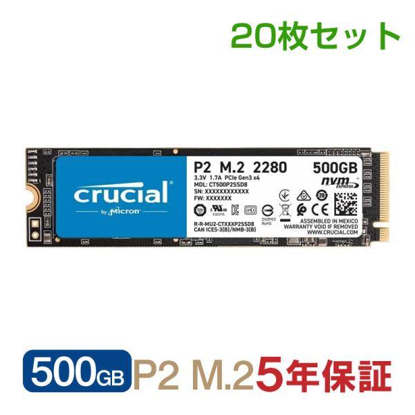 20枚セットお買得 Crucial クルーシャル 500GB NVMe PCIe M.2 SSD P2シリーズ Type2280 CT500P2SSD8 5年保証・ 翌日配達 宅配便配送 グローバル パッケージ