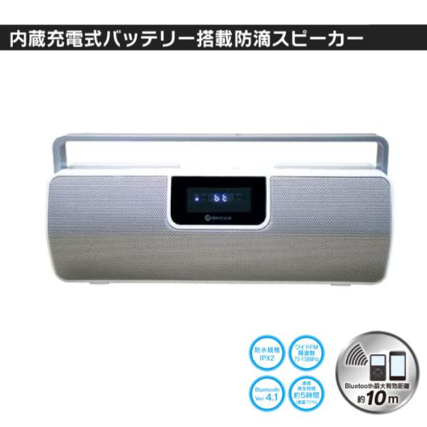 Bluetooth防滴ワイドFMポータブルスピーカー T4589837960023 スピーカー FMラジオ FM ラジオ 防滴スピーカー ポータブルスピーカー 防災用品 緊急用