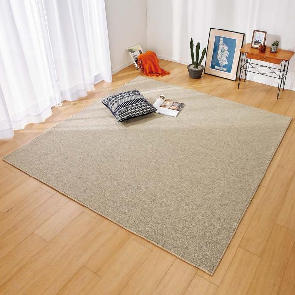- 寒い冬から湿気の多い夏まで、1年中活躍するウール100%カーペット。ウールならではの優れた機能と基布に抗菌防臭加工を施した清潔仕様で、快適かつ清潔に長く愛用できます。■ウールは呼吸する繊維ウールは別名「呼吸する繊維」と呼ばれており、外気の湿気に応じて湿気を吸収・放湿する効果を持ちます。また、熱伝導率が低く、空気を含んで断熱する効果も持っているので、冬は暖かく、夏はサラッと快適で寒い冬から湿気の多い夏まで1年中お使いいただける素材です。■天然のはっ水性ウールは天然のはっ水効果も持っているため、汚れがつきにくく、リビングやダイニングなどみんなが集まる空間の敷物としても適しています。■抗菌防臭加工ウールの機能と基布に抗菌防臭加工を施した嬉しい清潔仕様。防ダニ機能もあり、快適かつ、安心清潔に長くご使用いただけます。ページ下部に画像の説明がございます。一部別売りの商品もございますので、説明文ご確認のうえご注文ください。>画像の説明はこちら<仕様・サイズ[すべてのサイズに共通]■色:(ア)グレー (イ)ベージュ (ウ)ローズ (エ)グリーン■厚さ約10mm(毛足約7mm)■素材:毛100%、裏…不織布■サイズによりお届け日が異なる場合がございます。カートの「最新の在庫数を見る」からご確認ください。■日本製■抗菌防臭加工されています。【送料マーク:B】 この商品の配送料は2500円(税込)です。※沖縄県へのお届けは上記に地域特別配送料2200円(税込)が追加されます。 画像の説明(ア)グレー上から(ア)グレー (イ)ベージュ (ウ)ローズ (エ)グリーンウールの持つ吸放湿効果で素足でもサラッと快適。密度がぎっしり詰まっているので踏み心地もしっかり。(エ)グリーン(ウ)ローズ(イ)ベージュ(ア)グレー(イ)ベージュ(ウ)ローズ(エ)グリーン