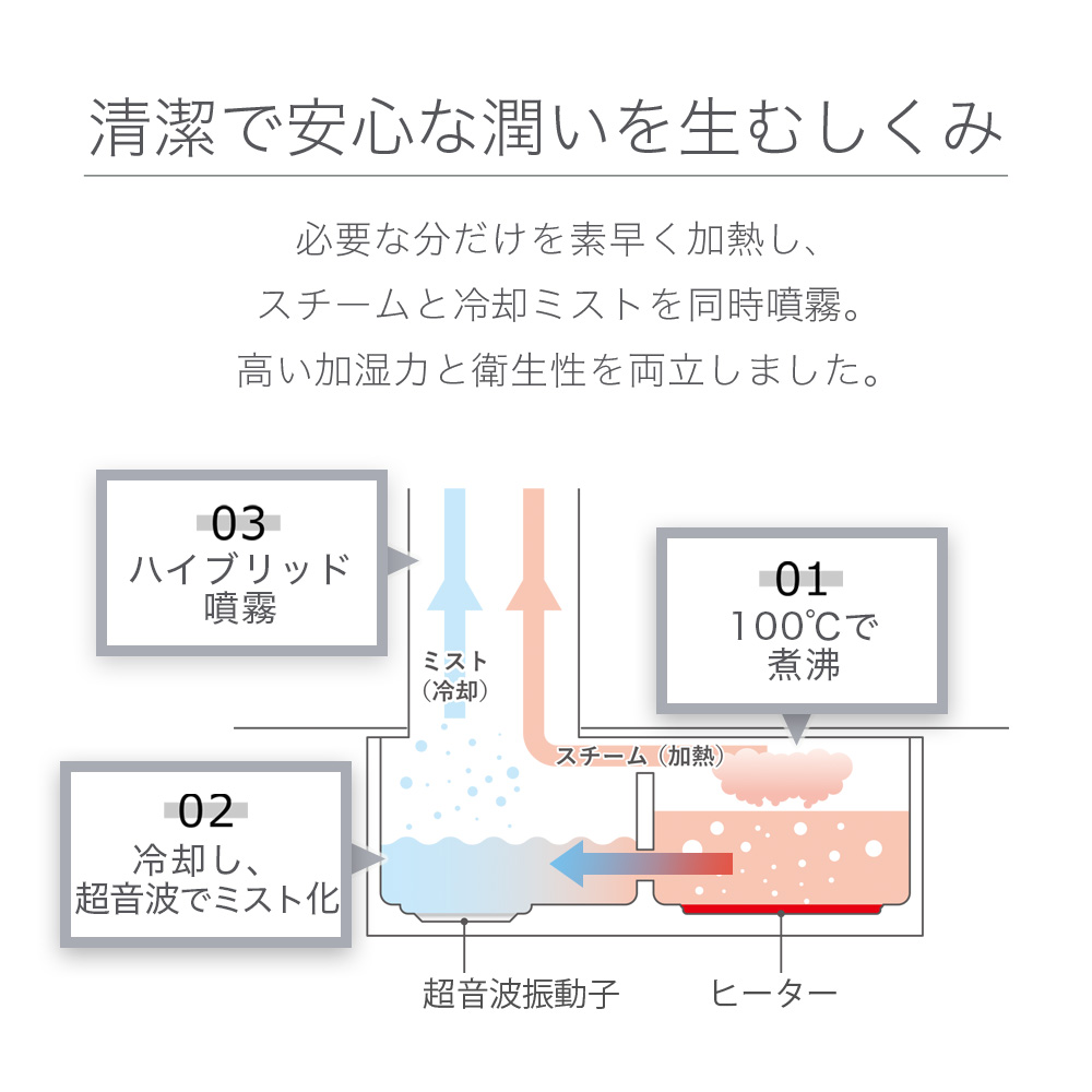 - スチーム式加湿器 加熱式加湿器 加熱除菌加湿器 清潔加湿器 おしゃれ加湿器 静音加湿器 コンパクト加湿器 卓上加湿器 大容量加湿器 子供部屋加湿器 寝室加湿器 オフィス加湿器 蒸気加湿器 高温加湿器 湿度対策 乾燥対策 カビ対策 ウイルス対策 花粉対策 美容保湿対策 インフルエンザ対策 清潔蒸気 省エネ設計 安全設計 簡単お手入れ 給水簡単 人気モデル 最新モデル