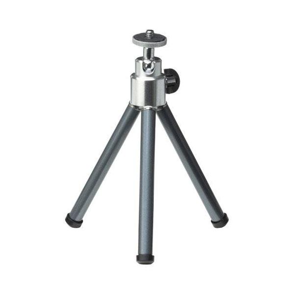 - 小さくたためて携帯に便利なコンパクトカメラ用ミニ三脚【商品仕様】本体:3段伸縮式丸パイプ脚雲台:自由雲台最大高:253mm最低高:138mm縮長:147mm重量:133g小型、軽量な卓上サイズのミニ三脚です。 デジタルカメラはもちろん、スマートフォンアダプタなど様々なものに取り付けられます。三脚部は3段伸縮式で14cmから25cmまで伸縮可能、雲台は360度回転、90度傾斜が可能です。 小さくたためて携帯に便利なコンパクトカメラ用ミニ三脚 小型、軽量な卓上サイズのミニ三脚です。セルフタイマーでの使用はもちろん、フラッシュを点けたくない屋内での撮影などにも役立ちます。 高い携帯性と三脚としての機能を両立する伸縮式脚部 脚は3段伸縮式で、14cmから25cmまで伸縮可能です。地面に置いての自撮りや卓上での料理の撮影など、直置きや台座では難しいちょっと角度を変えたい時などに便利です。 様々なカメラネジ対応製品で使用可能 一般的な1/4インチカメラネジになっているので、コンパクトカメラはもちろん、WEBカメラや全天球カメラ、スマートフォンアダプタなども取り付けられます。 細かい画角調整に対応する自由雲台 雲台は360度回転、90度傾斜が可能です。伸縮式の脚と自由雲台の組み合わせが、細かい画角の調整を可能にします。(カメラの重量や傾けるときの脚の位置に十分注意してください) パッケージ