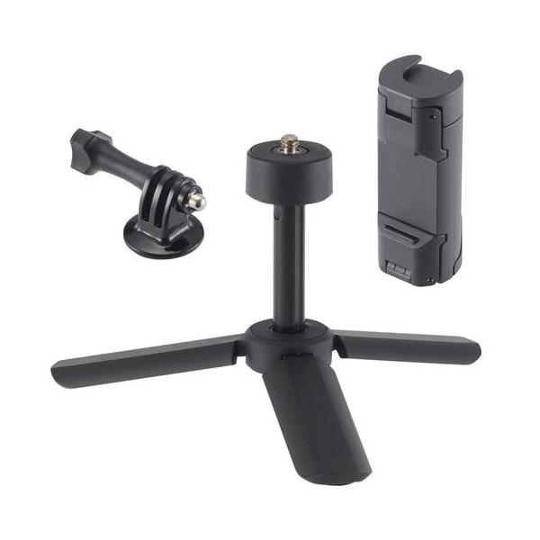 - ミニ三脚、モバイルホルダー、アクションカメラ用マウントのセット【商品仕様】商品サイズ:・三脚:全高 90〜170mm(開脚)・モバイルホルダー:外寸法 約W28×H75×D25mm・アクションカメラ用トライポッドマウント:外寸法 約W63×H28×D31mm材質:アルミニウム、ナイロン、ABS自撮り棒としても使えるミニ三脚とスマートフォンを固定できるモバイルホルダー、アクションカメラ用マウントのセットです。 ミニ三脚、モバイルホルダー、アクションカメラ用マウントのセット 自撮り棒としても使えるミニ三脚とスマートフォンを固定できるモバイルホルダー、アクションカメラ用マウントのセットです。 三脚とグリップの2WAY仕様 三脚としても、三脚の脚をたたんで自撮り棒としてもご使用いただけます。スマートフォン・アクションカメラ・コンパクトデジタルカメラに対応しています。 コンパクトに収納 ポール伸長約128mm。三段伸縮でスムーズに収納することができます。携帯しやすい軽量コンパクト設計なので、かばんに入れて持ち運べます。 細かい画角の調整が可能 ヘッド部分は自由に傾けることができ、細かい画角の調整が可能です。モバイルホルダーは、スマートフォンの画面をタテ、ヨコ自由な向きに変えることができます。 約60〜80mm幅のスマートフォンに対応 モバイルホルダーは約60〜80mm幅のスマートフォンに対応しています。 セルフィー撮影やテレワークに 素早く伸縮でき、スピーディーにセルフィー撮影がおこなえます。また、テレワーク時にもご使用いただけます。