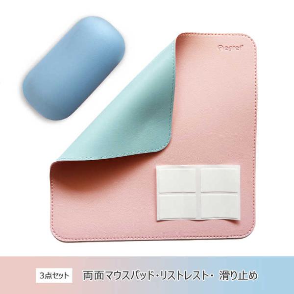 ビジネスハーモニー 両面リバーシブルマウスパッド及びリストレストセット EGRET ベビーピンク&アクアブルー EM24-MP1