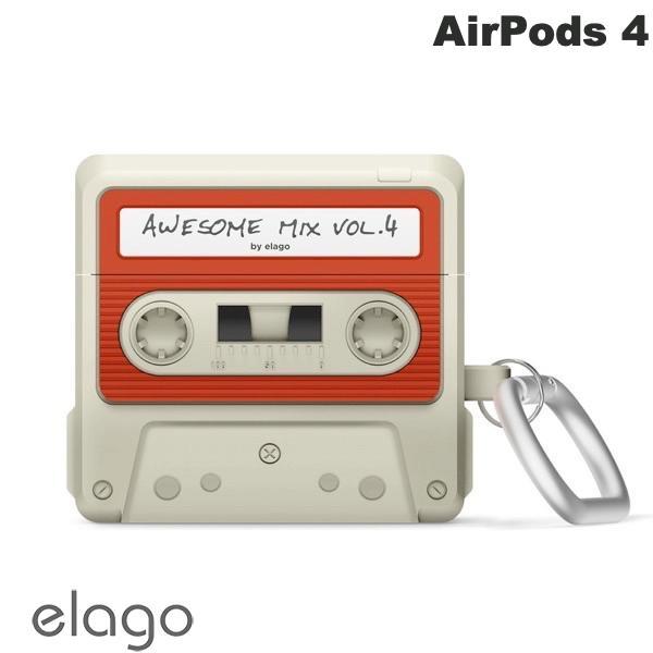 elago エラゴ AirPods 4 CASETTE TAPE HANG CASE カラビナ付き シリコンケース Classic White Red EL_AP4CSSCTK_WR
