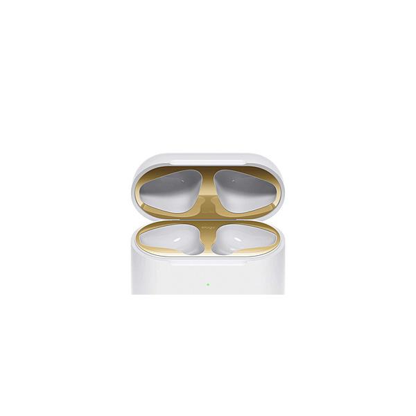 - 故障原因となるAirPods内部への金属粉や埃の侵入から守ります。ダストガード金属プレートには、ゴールドメッキコーティングを施しており、見た目もおしゃれです。Wireless Charging Caseに合わせて、ステータスランプ用の穴がない、シンプルでAirPodsにマッチするデザインです。
