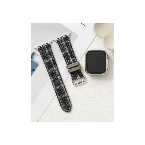 エモニーク emonique スマートウォッチバンド ツイード柄【38/40/41/42/44/45/49mm対応】 (ブラック)