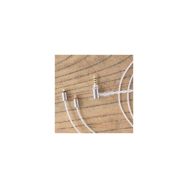 - MMCXコネクターは高精度な自社開発品です。音場に広がりを与える高純度OFCシルバーコートケーブルは、信号の伝送速度を追求したスーパーコンピューター「京(kei)」用のケーブル開発、製造している事でも名高い潤工社との共同開発品です。絶縁被膜には潤工社がジュンフロンブランドで多大のノウハウを持ち、最も誘電率の低い素材である素材PFAフッ素ポリマーを使用。外被には、柔軟性を高めるためにPVCを採用。驚きの柔軟性を実現し、極めて使いやすくタッチノイズも起こしにくいものになっています。また、断線を起こしやすいMMCXプラグ部分やミニプラグ部分については、通常5千回程度の屈曲試験で合格とするところを、5万回以上の屈曲試験に耐える仕様としています。音場に広がりを与えるオリジナル高純度OFCシルバーコートケーブル MMCX/2.5mmバランス L型プラグを採用