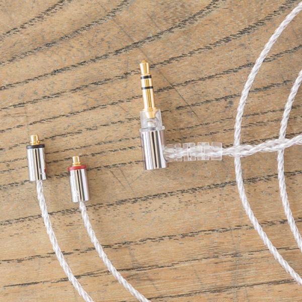 - MMCXコネクターは高精度な自社開発品です。音場に広がりを与える高純度OFCシルバーコートケーブルは、信号の伝送速度を追求したスーパーコンピューター「京(kei)」用のケーブル開発、製造している事でも名高い潤工社との共同開発品です。絶縁被膜には潤工社がジュンフロンブランドで多大のノウハウを持ち、最も誘電率の低い素材である素材PFAフッ素ポリマーを使用。外被には、柔軟性を高めるためにPVCを採用。驚きの柔軟性を実現し、極めて使いやすくタッチノイズも起こしにくいものになっています。また、断線を起こしやすいMMCXプラグ部分やミニプラグ部分については、通常5千回程度の屈曲試験で合格とするところを、5万回以上の屈曲試験に耐える仕様としています。音場に広がりを与えるオリジナル高純度OFCシルバーコートケーブルMMCX/3.5mm L型プラグを採用