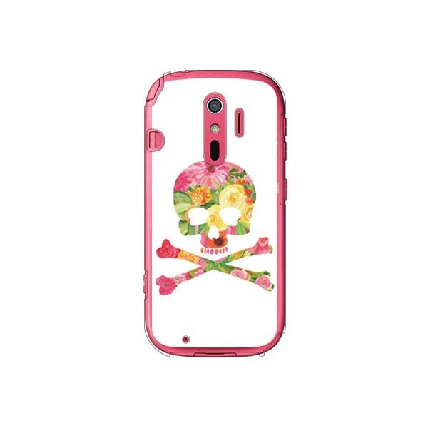 らくらくスマートフォン4 F-04J Flower skull ホワイト スマホケース (受注生産)