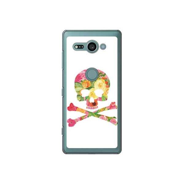 Xperia XZ2 Compact ケース SO-05K Flower skull ホワイト スマホケース (受注生産)