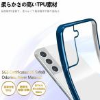 Galaxy S22 ケース 透明 クリア 青 ギャラクシーS22 カバー TPU 薄型 軽量 耐衝撃 黒縁 メッキ加工 ソ