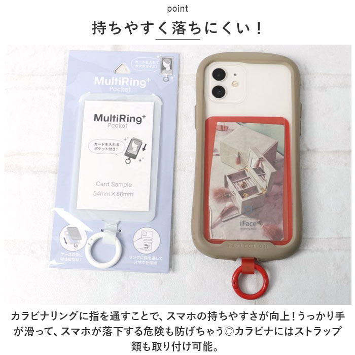 マルチリングプラス カード 通販 マルチリング ポケット付き 挟むだけ はさむだけ スマホ スマートフォン 携帯電話 携帯 カラビナ 落下防止 推し ペット