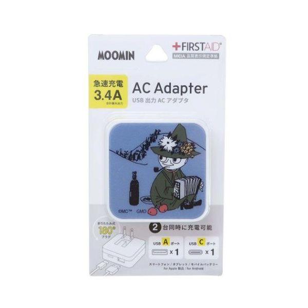 ムーミン スナフキン 急速充電器 USB/USB Type-C ACアダプタ グルマンディーズ MMN-146C