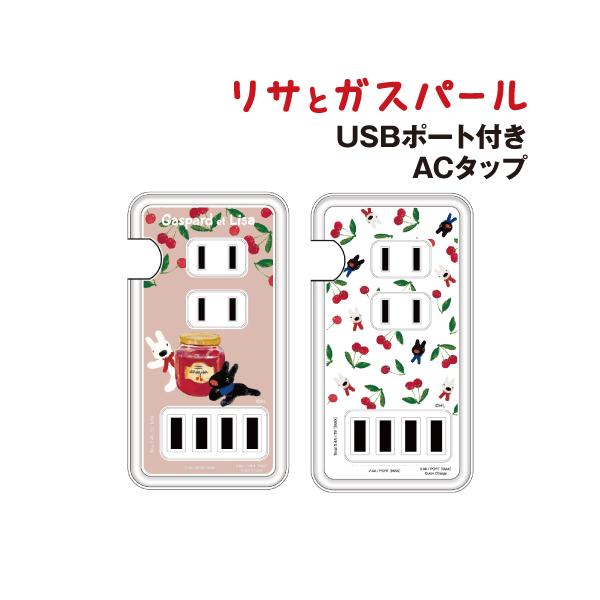 送料無料 リサとガスパール USBポート付き ACタップ COS-146 /ジャム 総柄