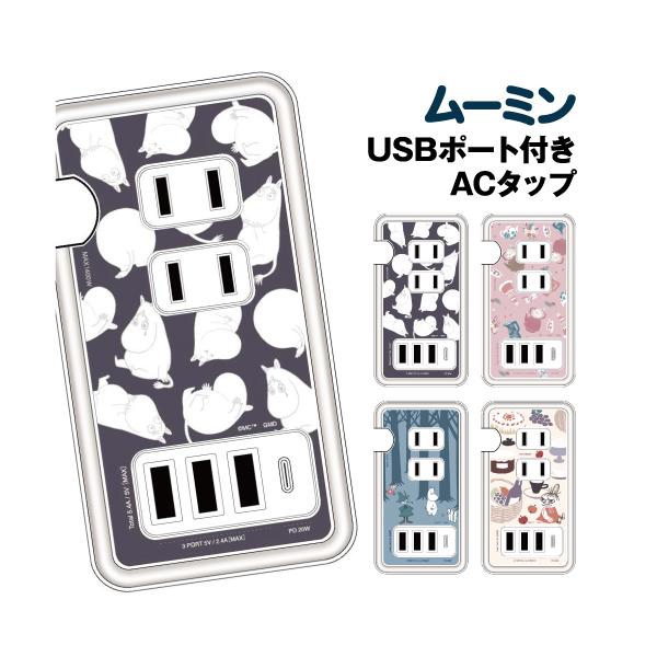 送料無料 ムーミン USB/USB Type-C付き ACタップ MMN-176 / ムーミン総柄 リトルミイ総柄 森の中 リトルミイ