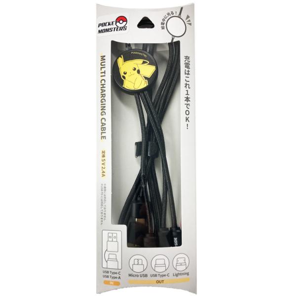 ポケットモンスター フラッシュマルチ充電ケーブル ピカチュウ チャージングケーブル 充電コード USB まるち 115399