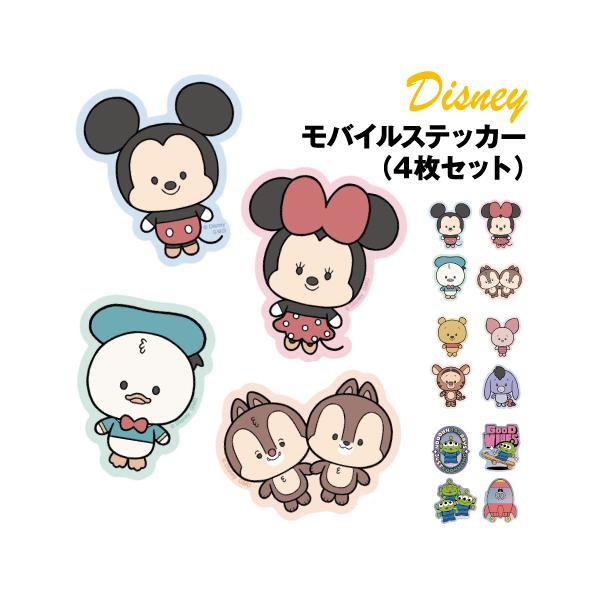 ディズニー、ディズニー・ピクサーキャラクター モバイルステッカー(4枚セット) DNG-190 /ミッキー&フレンズ くまのプーさん エイリアン