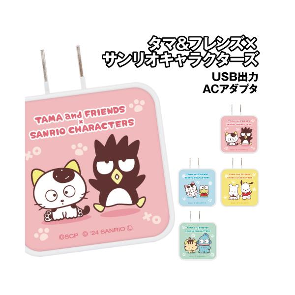 送料無料 タマ&フレンズ×サンリオキャラクターズ USB/USB Type-C ACアダプタ SANTA-02 / バッドばつ丸 けろけろけろっぴ ポチャッコ ハンギョドン
