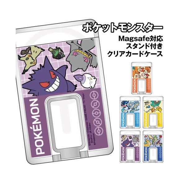 送料無料 ポケットモンスター MagSafe対応 スタンド付きクリアカードケース POKE-981 / ほのおタイプ みずタイプ でんきタイプ ゴーストタイプ ドラゴンタイプ