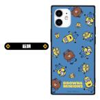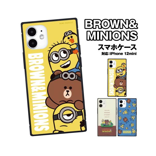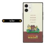 送料無料 BROWN&MINIONS iPhone12mini対応スクエアガラスケース MINI-277 /集合 ソファ 総柄 ミニオンズ