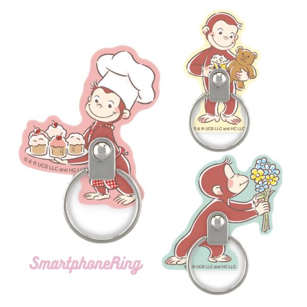 おさるのジョージ スマホリング ポップコーン ケーキ お花 iPhone Xperia AQUOS スマホ Android