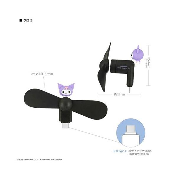 グルマンディーズ(gourmandis) SANG-539KU クロミ サンリオキャラクターズ コネクタ付き ミニクールファン USB Type-C