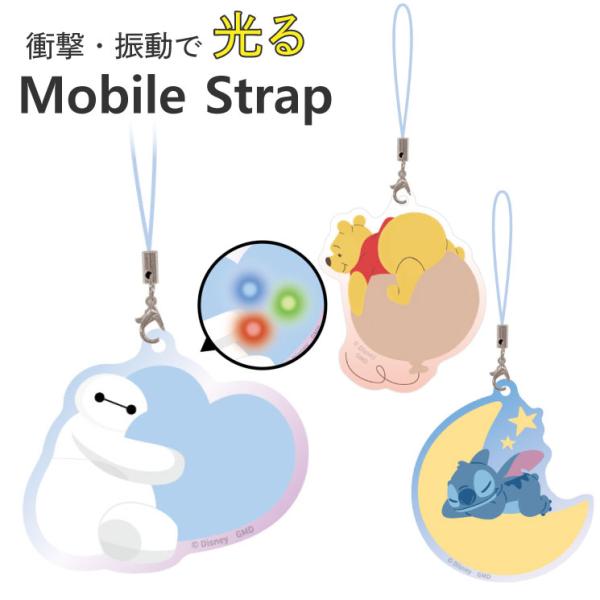 ディズニー ストラップ スマホ モバイル 光る LED ベイマックス スティッチ プーさん キャラクター グッズ 携帯 アクセサリー チャーム キーホルダー