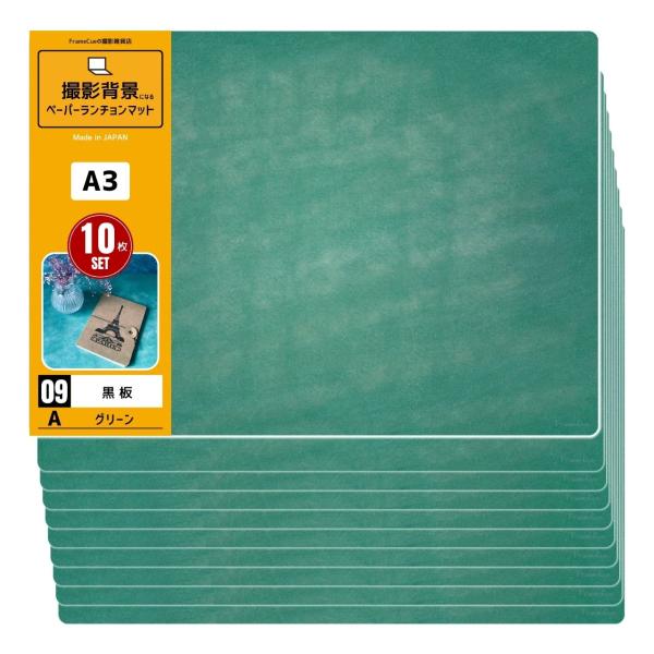 FrameCue 10枚セット 09黒板Aグリーン(1柄×10枚)撮影背景になるペーパーランチョンマット A3 背景紙 ペーパーランチョンマット 撮影 バックペーパー