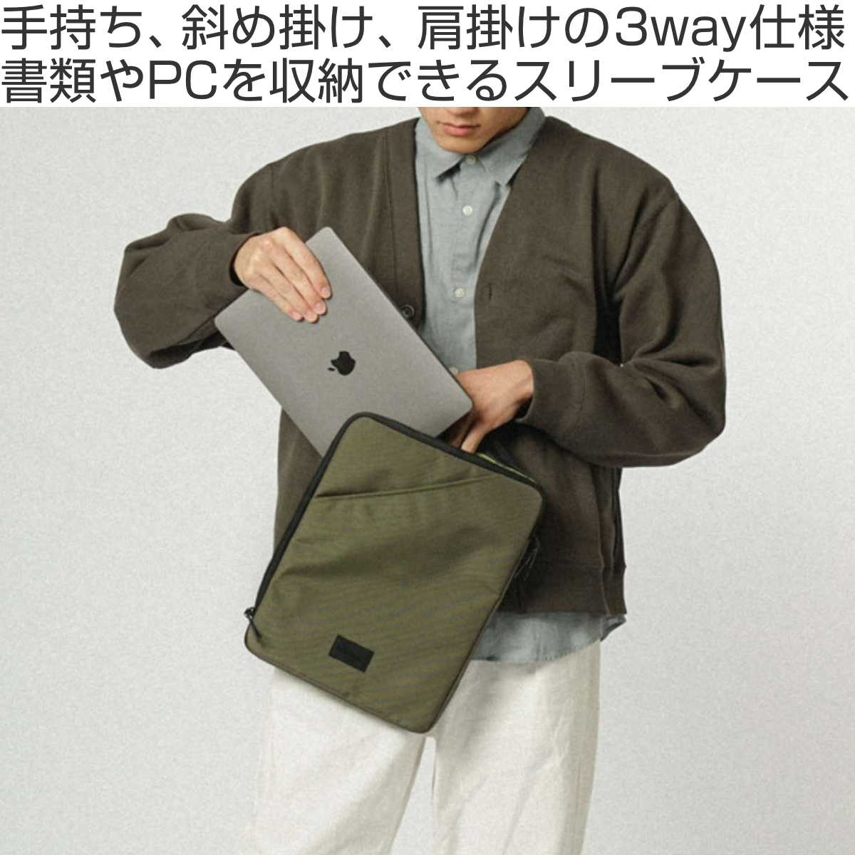 ●手持ち、斜め掛け、肩掛けができる3wayタイプのスリーブケースです。