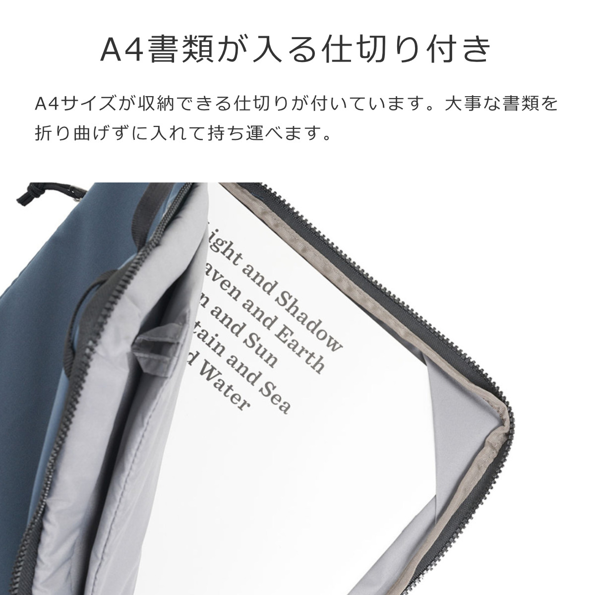 ●A4サイズが収納できる仕切り付きで折り曲げずに収納できます。