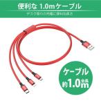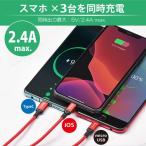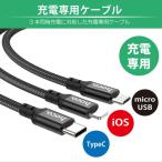 - 【返品種別A】□「返品種別」について詳しくはこちら□2022年04月 発売◆iOS/Type-C/microUSB端子の3台の機器を同時に充電できる充電専用ケーブル◆三つ又ケーブルiOS、Type-C、micoroUSB端子を搭載しているので、スマートフォンやタブレット、モバイルバッテリー、イヤホンなど、様々なガジェットをまとめて充電可能。◆最大5V/2.4A対応(充電専用)iOS、 Type-C、micorUSB、3本のケーブルの合計が最大5V/2.4Aまで対応しております。※接続する端末の合計入力に対応するUSB電源をご利用ください。USB電源からの電力が不足した場合、正常に充電することができません。◆耐久性の高いデザインコネクター部には丈夫なアルミ製カバーを装備。ケーブルはしなやかで耐久性のあるメッシュ外装を採用。■ 仕 様 ■本体寸法:幅15×奥行7×高さ1000mm長さ:約1m入力端子:USB-A出力端子:iOS、Type-C、microUSB(充電専用)※iOS端子はMFI非認証※データ転送には対応しておりません。[X143IN1BK]パソコン周辺>電源/配線>ケーブル>USBケーブル類