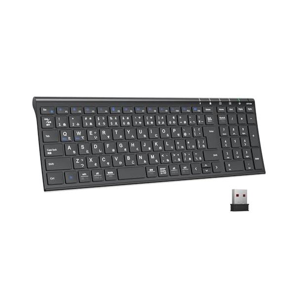 iClever キーボード ワイヤレスキーボード 無線 2.4GHz(レシーバー付属) テンキー付き Type-C充電式 日本語JIS配列 薄型