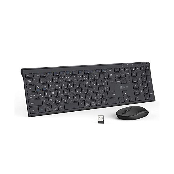 - iClever キーボードワイヤレスキーボードマウスセット日本語JIS配列 静音 超薄型 type c充電式 フルサイズ<店内2点以上お買上げでさらに200円引クーポン進呈> iClever キーボードワイヤレスキーボードマウスセット日本語JIS配列 静音 超薄型 type c充電式 フルサイズ 送料無料 2021新発売【2.4G無線JIS配列&フルサイズキーボード&マウスセット】キーボードとマウスは一つのレシーバーを共用し、レシーバーを差し込むだけで使用できます。2.4GHzワイヤレステクノロジーにより、近周波数の電波が多く存在する環境でも、遅延やデータ欠落、干渉のない、安定した通信で快適に操作が可能です。更に最大10mの動作距離を実現しました。数字入力に便利なテンキーを搭載しており、Excel表、会計業務、金融アプリケーションの作業にも最適です! 【タイピングしやすい&マルチファンクション機能】キー構造には一般的なノートPCと同じ「パンタグラフ方式」と、打ちやすくネイルアートを施した指先でも操作しやすい19mmキーピッチを採用。浅めな1.8mmキーストロークは、静か、快適、滑らかなタイピング感を実現します。軽い力でキーを押せる上、人間工学に基づいた傾きのある斜面設計により疲労を感じにくく、手首が一番リラックスした状態での入力が可能に。大型のエンターキーや、独立して配置されたDeleteやInsertなどの特殊キーにより、誤入力しにくく快適なキータイピングが行えます。ノートパソコンをよく使う方、高速入力を求める方にもおススメの一品です。この無線キーボードは、ミュート、再生/一時停止、音量など、さまざまなホットキーに簡単にアクセスできるため、仕事の効率も大幅にアップ! 【新型Type-C急速充電式&省エネ設計と優れた耐久性】280mAHバッテリー内蔵のType-C充電式キーボードのため、面倒な電池交換は不要です。たった2時間でフル充電でき、90時間の連続使用が可能に。また、キーボード、マウスとも不使用時の電池の消耗を防止できる電源スイッチを搭載しています。30分間無操作の場合は、自動的にスリープモードになります。キーボードの裏面には亜鉛メッキ鋼板が使用され、プラスチック製品よりも一段と高級感、高品質感が漂います。素材の性質としても、腐食されにくく、長年の使用に耐えられる耐久性に優れています。 【左右対称&DPI調節可能な静音マウス】マウスには単4乾電池2本が必要です(別売り)。流線型のマウスは手にピッタリとフィットするデザインを追求。マウスの感度は三段階DPIレベル(1000/1200/1600)間で簡単に調節が可能。WEBの閲覧はもちろん、ゲームやイラストレーションなど精密な作業にも最適です。また、サイレントスイッチを採用しており、静かなクリック音を実現。図書館などでも周囲を気にせずに使用できます。※ホイールはばねがあるため、少し音がします。 【幅広い互換性と薄型デザイン&18ヶ月品質保証】Windows 2000、XP、Vista、Win 7、Win 8、Win 10または最新のWindows、Macと互換性があります。 PC、デスクトップ、およびラップトップで操作できます。3.95mm極薄の洗練されたボディとシンプルでお洒落な外観は、オフィスでも家でも申し分なく使えます。本体寸法:42.8x12.5cm、キーボードの薄さ(奥1.5〜手前0.3cm)が作業のスピードアップを促進。ご購入日より18ケ月の保証が付いています。ご不明点がございましたら、お気軽にメールにてお問い合わせください。