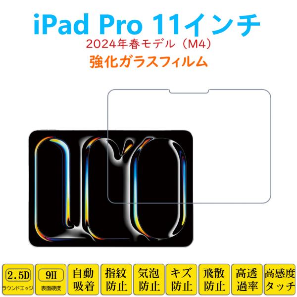 iPad Pro 11インチ(M4)タブレットフィルム 強化ガラスフィルム 2024年春モデル 液晶保護 自動吸着 指紋防止 画面フィルムシール スクリーンプロテクター