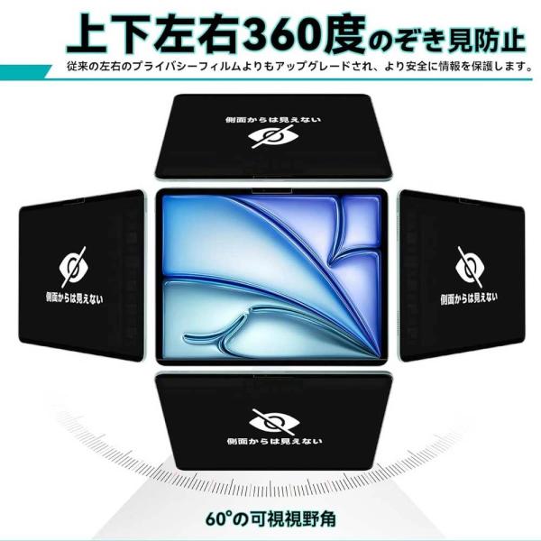 【360度 覗き見防止フィルム】アイパッド iPad(A16)(第10/9/8/7世代)・iPad mini(A17Pro) 第6世代・iPad Air(11インチ)(M2)(M3) 液晶ガラス保護フィルム