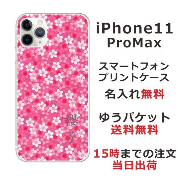 iPhone11 ProMax ケース アイフォン11プロマックス カバー らふら 名入れ 和柄 桜ピンク