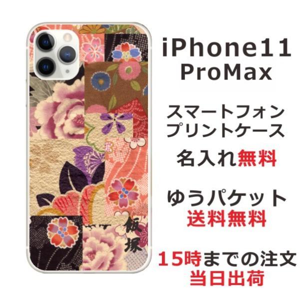 iPhone11 ProMax ケース アイフォン11プロマックス カバー らふら 名入れ 和柄 和花パッチワーク