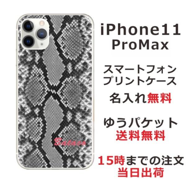 iPhone11 ProMax ケース アイフォン11プロマックス カバー らふら 名入れ へび柄 ブラック
