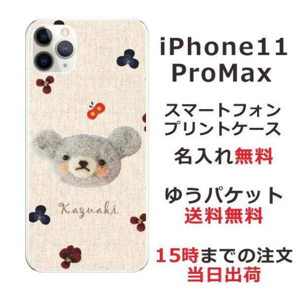 iPhone11 ProMax ケース アイフォン11プロマックス カバー らふら 名入れ フェルト風プリントベア