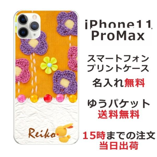 iPhone11 ProMax ケース アイフォン11プロマックス カバー らふら 名入れ キルトフラワーオレンジ